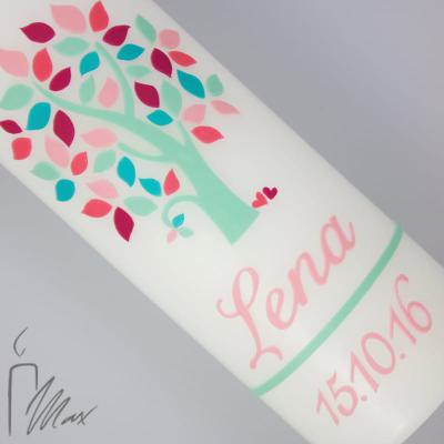 Überraschen Sie ihr Gäste mit einer stilechten Geschenkkerze im Design der Taufkerze "Lebensbaum Ben".